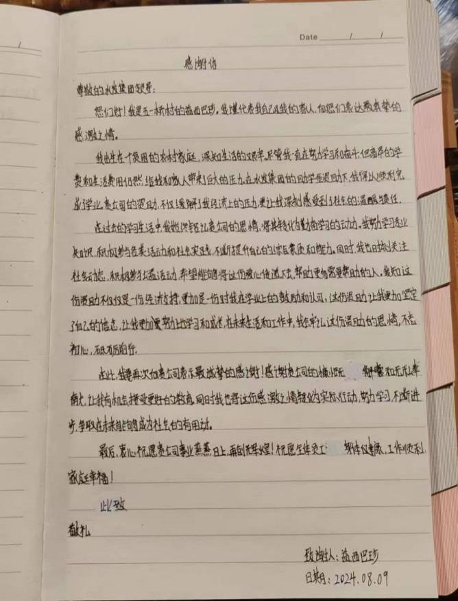 按照省委托底性幫扶戰(zhàn)略部署,在水利廳的領(lǐng)導(dǎo)下,集團(tuán)認(rèn)真履行省屬國企社會責(zé)任,立足企業(yè)實(shí)際,將集團(tuán)優(yōu)勢與德格縣資源稟賦充分結(jié)合,加快推進(jìn)德格縣托底性幫扶、振興發(fā)展工作取得實(shí)效。為更好地助力集團(tuán)對德格縣的托底幫扶工作,集團(tuán)團(tuán)委于2022年以來按年度實(shí)施開展了“滴灌育苗”助學(xué)幫扶活動,截至目前,累計(jì)向德格縣更慶鎮(zhèn)五一橋村捐贈助學(xué)幫扶金3.48萬元,幫助青少年學(xué)生48人次順利入學(xué),受助學(xué)生也對集團(tuán)“滴灌育苗”助學(xué)幫扶計(jì)劃心存感激,紛紛發(fā)來感謝信。