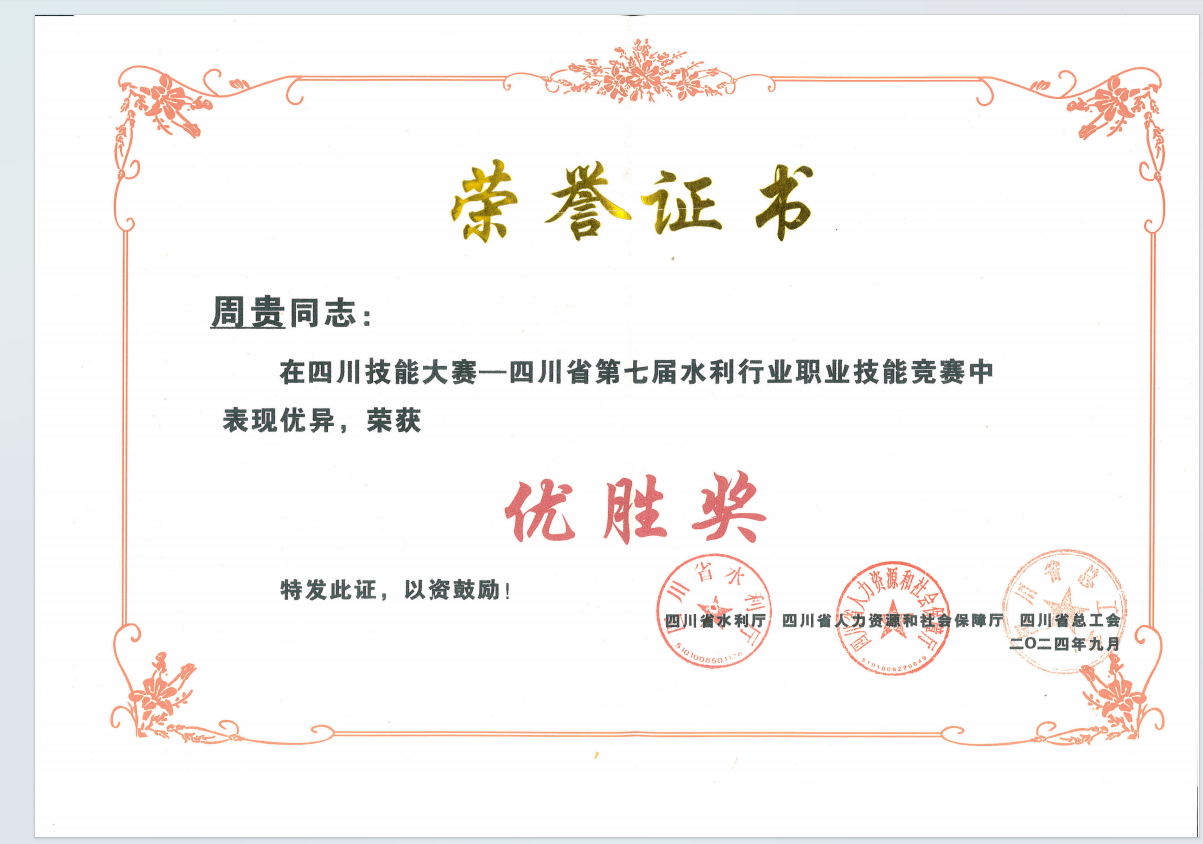 四川技能大賽——四川省第七屆水利行業(yè)職業(yè)技能競賽,由四川省水利廳、四川省人力資源和社會保障廳、四川省總工會聯(lián)合舉辦,是四川省水利行業(yè)級別最高、規(guī)模最大、影響最廣的職業(yè)技能賽事。本次競賽分為理論考核和技能操作兩部分進行,匯聚了全省水利行業(yè)從事水工閘門運行一線技能工作的37個單位82名參賽選手。經(jīng)過預(yù)賽、決賽兩個階段的激烈角逐,集團組織參賽選手向家壩公司周貴在本次競賽中喜獲優(yōu)勝獎。