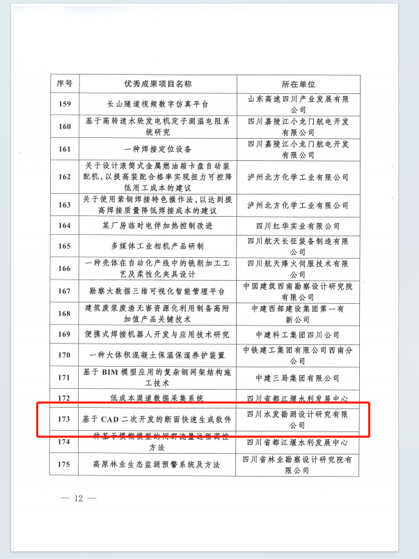 近日,集團設計公司測繪分院信息組申報的項目“基于CAD二次開發的斷面快速生成軟件”取得四川省職工“五小”活動優秀創新成果。